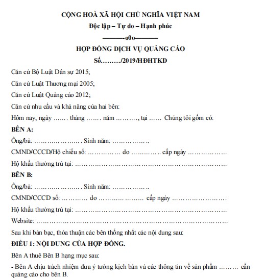 HỢP ĐỒNG DỊCH VỤ QUẢNG CÁO