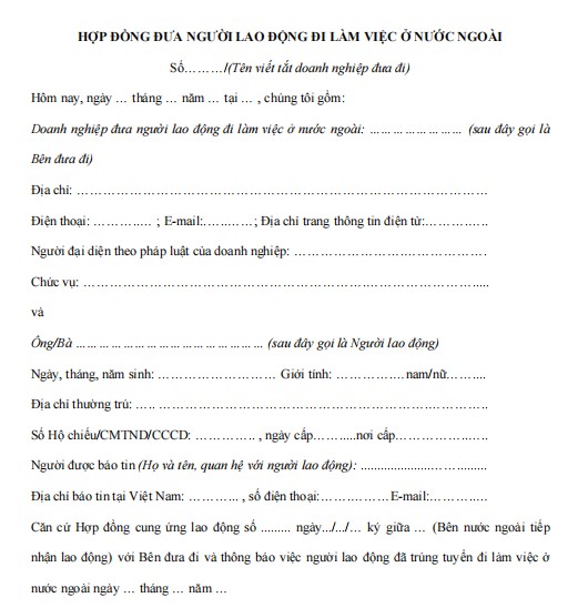 HỢP ĐỒNG ĐƯA NGƯỜI LAO ĐỘNG ĐI LÀM VIỆC Ở NƯỚC NGOÀI