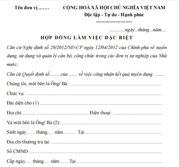 HỢP ĐỒNG LÀM VIỆC ĐẶC BIỆT
