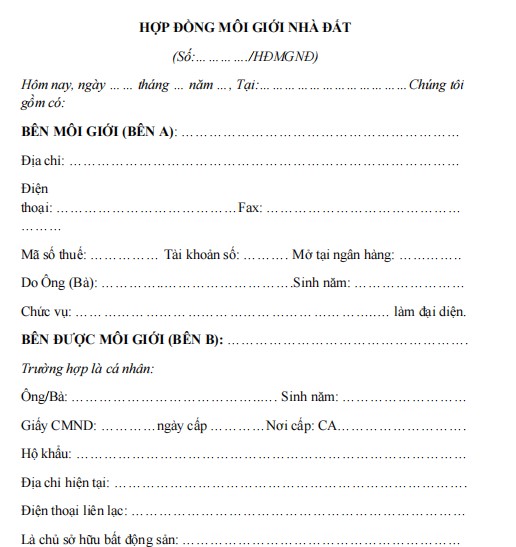 HỢP ĐỒNG MÔI GIỚI NHÀ ĐẤT