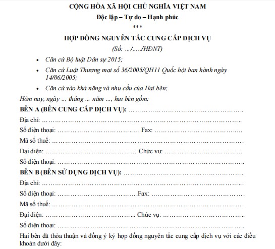 HỢP ĐỒNG NGUYÊN TẮC CUNG CẤP DỊCH VỤ
