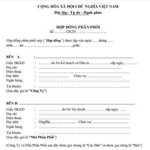 Nội dung hợp đồng được trình bày rõ ràng, chi tiết và tuân thủ đúng quy định pháp luật hiện hành, từ đó tạo nền tảng vững chắc cho việc triển khai hoạt động kinh doanh. Mẫu hợp đồng phân phối hàng hóa không chỉ giúp các bên hiểu rõ trách nhiệm của mình mà còn góp phần nâng cao tính chuyên nghiệp trong quan hệ thương mại, đảm bảo lợi ích của cả nhà cung cấp lẫn đơn vị phân phối. Mời các bạn cùng tham khảo và tải về sử dụng.
