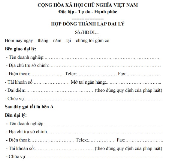 HỢP ĐỒNG THÀNH LẬP ĐẠI LÝ