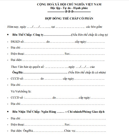 HỢP ĐỒNG THẾ CHẤP CỔ PHẦN