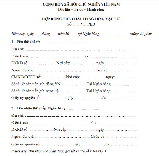 HỢP ĐỒNG THẾ CHẤP HÀNG HOÁ, VẬT TƯ