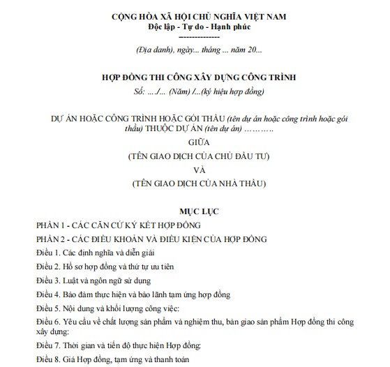 HỢP ĐỒNG THI CÔNG XÂY DỰNG CÔNG TRÌNH