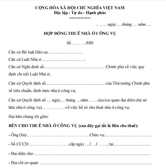 HỢP ĐỒNG THUÊ NHÀ Ở CÔNG VỤ