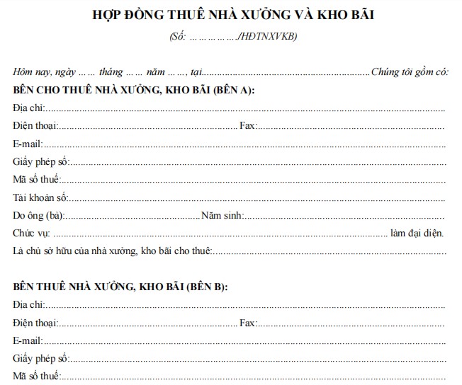 HỢP ĐỒNG THUÊ NHÀ XƯỞNG VÀ KHO BÃI