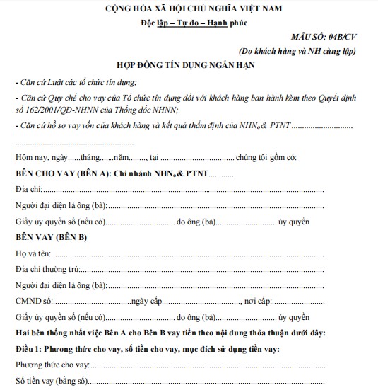 HỢP ĐỒNG TÍN DỤNG NGẮN HẠN