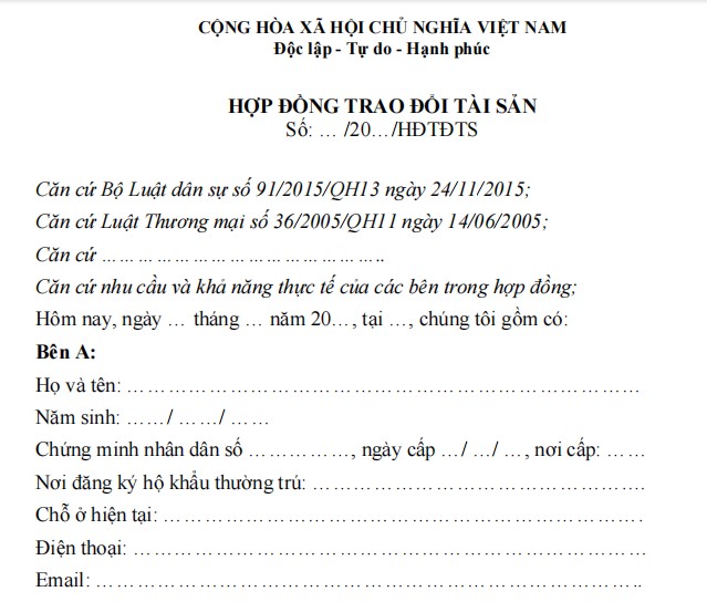 HỢP ĐỒNG TRAO ĐỔI TÀI SẢN