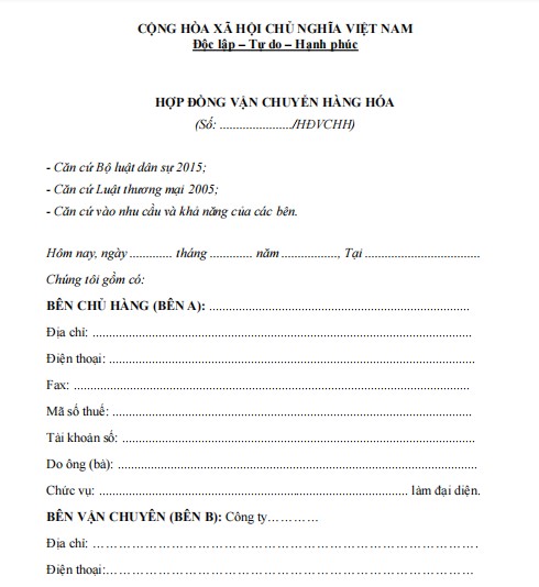 HỢP ĐỒNG VẬN CHUYỂN HÀNG HÓA