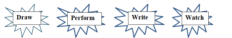 -Members of each team take turns and write as many music /arts phrase words as possible in 2 minutes.
