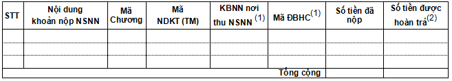 Yêu cầu KBNN (nơi trực tiếp hoàn trả): ...................... Tỉnh, TP ............................