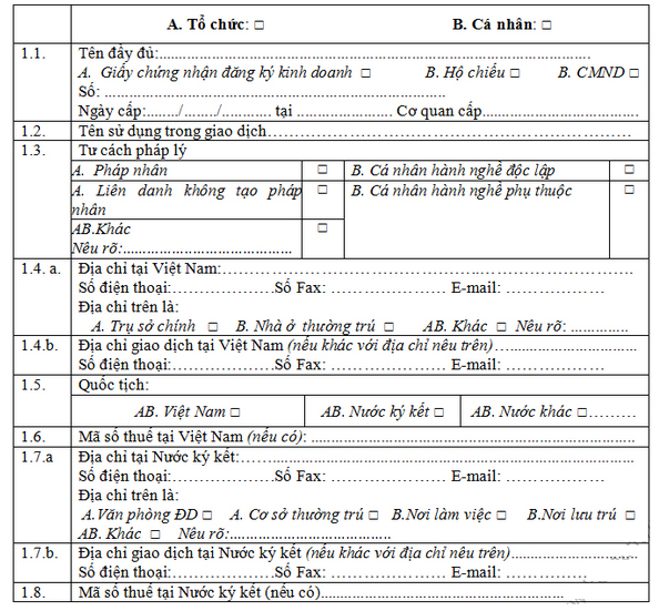 (Áp dụng đối với các tổ chức, cá nhân là đối tượng cư trú của Việt Nam)