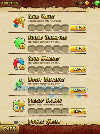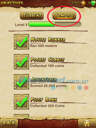 The Spartan - đạt một triệu điểm mà không dùng tới Power Up: bắt đầu nâng cấp gói Save Me và Score Multiplier tùy ý cho đến khi bạn hoàn thành mục tiêu này và chuyển sang nhiệm vụ tiếp theo. Đặc biệt chú ý không sử dụng bất cứ Power Up nào trong khi hoàn thành mục tiêu này. Bạn chỉ cần thu thập vàng và ngọc xanh trên đường chạy, và chỉ dùng Save Me khi yêu cầu 1 ngọc, điều này sẽ giúp bạn tiết kiệm ngọc cho những lần cứu mạng sau.