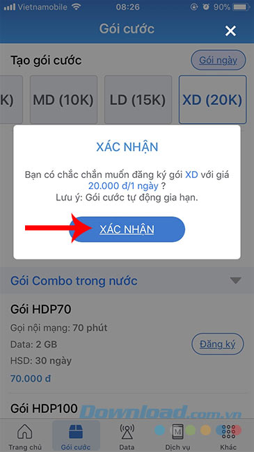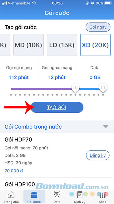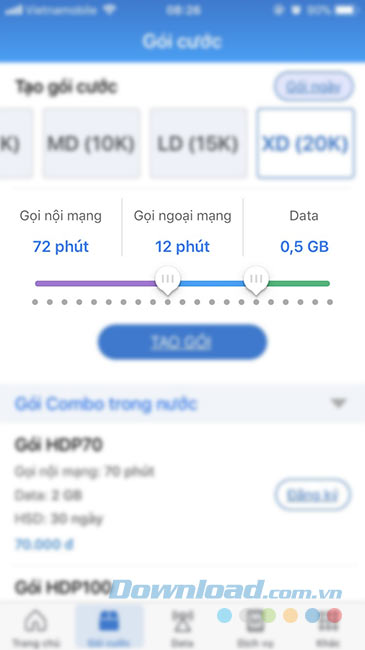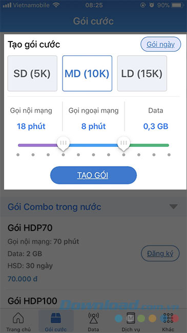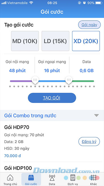 Sau khi chỉnh xong, chọn Tạo gói và chạm tiếp vào Xác nhận để thực hiện là được. Đây là tính năng khá tiện dụng và phù hợp với các bạn sinh viên hoặc những ai có nhu cầu chỉ tập trung chính vào gọi hoặc sử dụng dữ liệu di động.