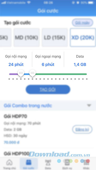 Nếu gọi điện nhiều, hãy chỉnh cho phần Gọi nội mạng (hoặc Gọi ngoại mạng) nhiều thời gian hơn. Hoặc nếu muốn sử dụng 3G, 4G nhiều hơn, hãy chỉnh cho phần Data nhiều lên. Mỗi thay đổi nhỏ đều thể hiện và con số cụ thể sẽ hiện lên để chúng ta có thể quan sát, cân đối và điều chỉnh.