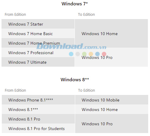 Với hệ điều hành Windows 10, người dùng sẽ có thể nâng cấp lên hai phiên bản: