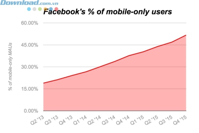 Tính đến tháng 7/2017, khi Facebook đã cán mốc hơn 2 tỷ người dùng, mạng xã hội này có tới 56,5% người chỉ đăng nhập bằng điện thoại và hơn 1,15 tỷ người dùng mobile hoạt động trên Facebook hàng ngày.