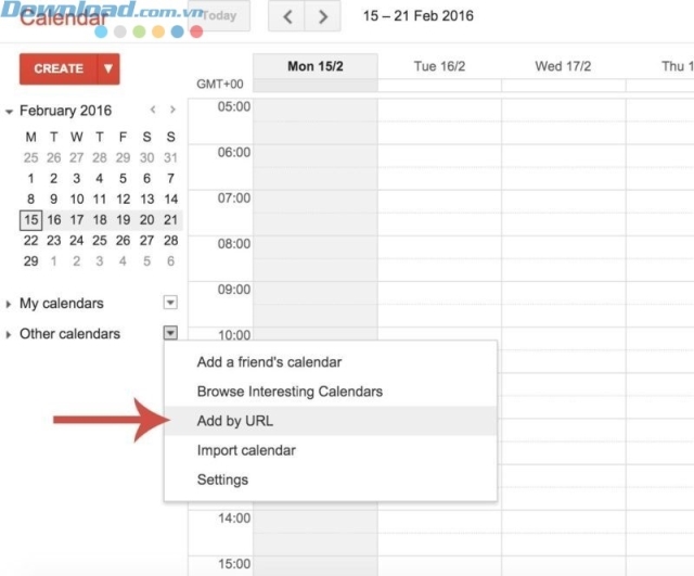 Sao chép đoạn URL đó, mở Google Calendar và bên tay trái sẽ thấy một tùy chọn là Other Calendars. Nhấp vào menu hạ xuống bên cạnh chữ Other Calendars và chọn Add by URL.