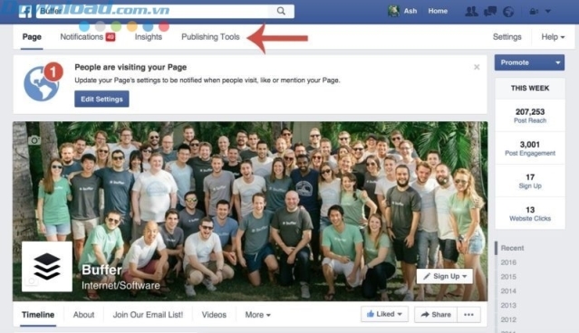Để tìm Thư viện Video, hãy tới trang của bạn và nhấp vào Publishing Tools.