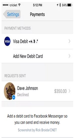 Không chỉ là ứng dụng chat, Facebook còn có chức năng chuyển tiền, tương tự như PayPal. Tuy nhiên, tính năng này mới được thử nghiệm ở nước Mỹ, Canada, Australia, Liên minh châu Âu và có vẻ như Facebook đang muốn mở rộng ra toàn cầu.