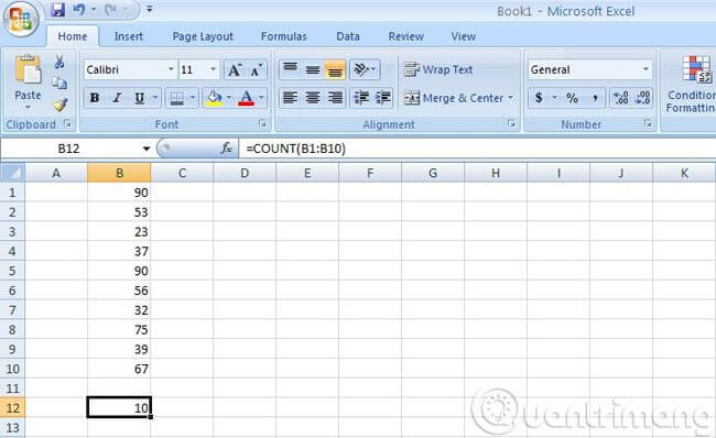 Bạn có một bảng tính với cơ sở dữ liệu khổng lồ và cần biết có bao nhiêu ô trong một vùng nào đó hay trong toàn bộ bảng tính chỉ chứa chữ số, không chứa chữ cái. Thay vì phải ngồi đếm một cách thủ công thì bạn có thể sử dụng hàm =COUNT(). Ví dụ, bạn cần đếm từ ô B1 đến B10, hãy gõ =COUNT(B1:B10).