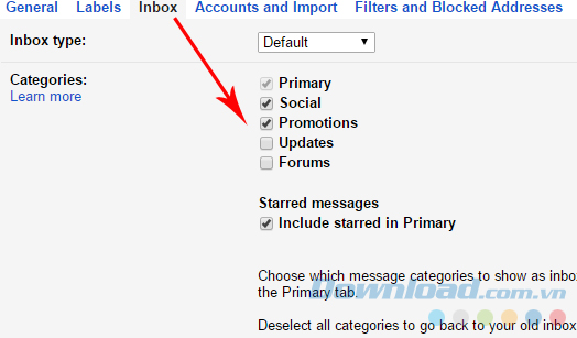 Nếu các bạn để ý, sẽ nhận thấy trong Gmail thường có những tab xuất hiện bên trên ở giao diện hiển thị mail (tay phải). Mặc định sẽ có Primary (Quan trọng), Social (mạng xã hội), Promotions (Quảng cáo), nhưng nếu muốn thay đổi, chỉ cần vào Settings. Đổi tên, thêm mới, xóa bớt để Gmail phân loại email theo tính chất của thư.
