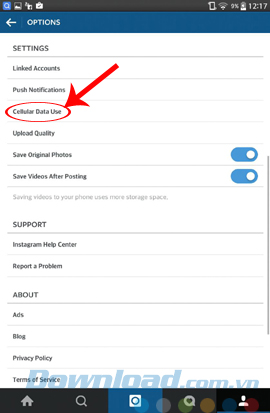 Bình thường Instagram mặc định tốc độ của nó ở Use Less Data (hạn chế lưu lượng) để giúp người dùng tiết kiệm chi phí (những người sử dụng 3G). Tuy nhiên, nếu thường xuyên sử dụng Wifi, bạn có thể vào Options / Cellular Data Use và chuyển nó về Default.