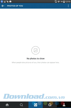 Nhấp vào biểu tượng hình người (bên cạnh biểu tượng Location) từ giao diện Profile của mình. Trong Photos of you sẽ là những bức ảnh mà bạn đã được tag vào (cá nhân người viết chưa có ảnh nào nên khung hiển thị sẽ không có ảnh).