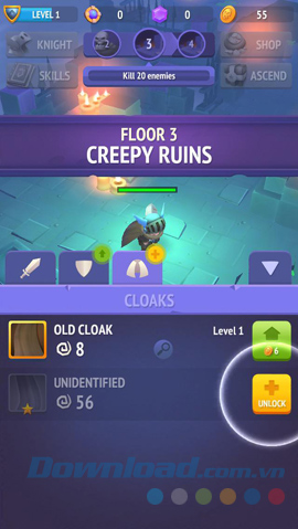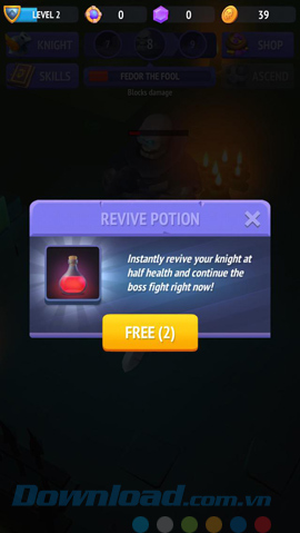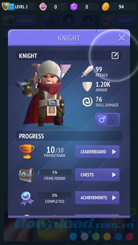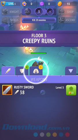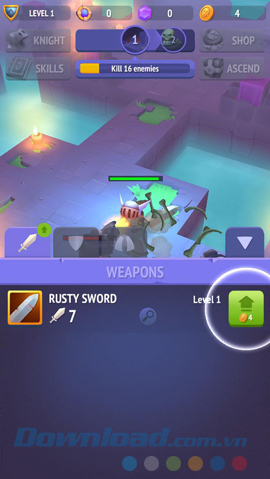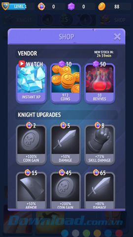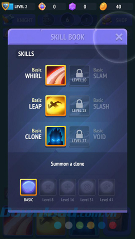 Bước 4: Mỗi skill cũng có những cấp độ và tính năng khác nhau tùy theo cấp độ đó. Nonstop Knight có 3 loại Skill: