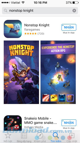 Bước 1: Các bạn vào App Store, nhập từ khóa game "Nonstop Knight" rồi tải về máy.