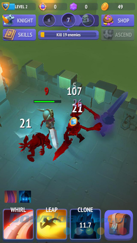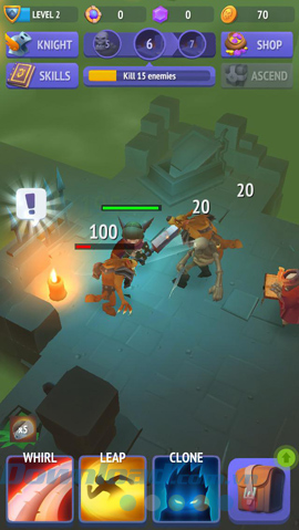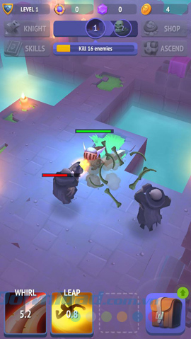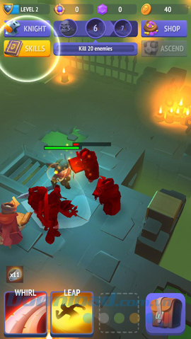 Với hai Skill được trang bị sẵn (miễn phí), người chơi sẽ sử dụng những skill để tiêu diệt quái vật (thực chất là game này cũng không có nút điều khiển nào khác).
