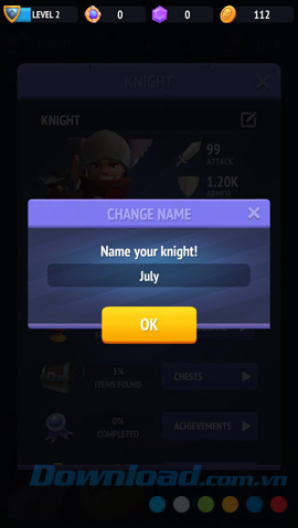 Cũng như nhiều game khác, Nonstop Knight cho phép đổi tên nhân vật tùy ý.