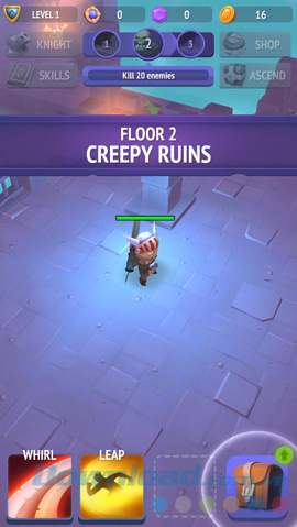 Bước 2: Chạm vào điểm bất kỳ trên màn hình để tiếp tục. Bắt đầu vào game, Hiệp sỹ của chúng ta sẽ xuất hiện, có thể thấy nhân vật không hề dừng lại cho tới khi chạm trán quái vật.