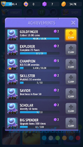 Tên gọi và tác dụng của từng vật phẩm trong Nonstop Knight
