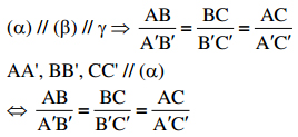 - Định lý 6: (Định lý Talet trong không gian) Các mặt phẳng song song định trên hai cát tuyến những đoạn thẳng tương ứng tỉ lệ