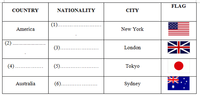 1. Hoàn thành bảng sau