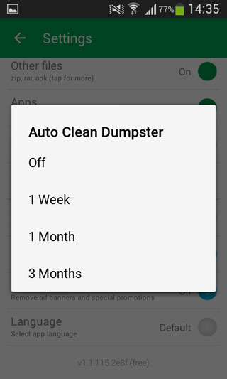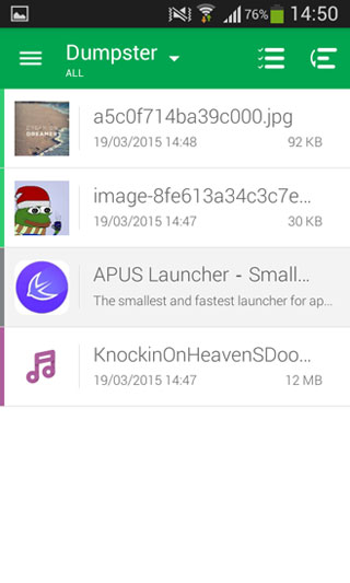 Nếu điện thoại có Dumpster rồi thì không bao giờ lo lắng việc xóa nhầm files trên Android nữa phải không. Việc khôi phục lại các files đã xóa như nhạc, video, tài liệu và một số files khác rất dễ dàng bằng Recycle Bin trên Android.