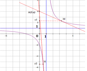 Phương trình tiếp tuyến của (C) đi qua tiếp điểm M(x0,y0) là -\frac{1}{a}\(-\frac{1}{a}\)(x−x0)+y0