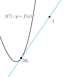 Cho đồ thị hàm số y=f(x), viết phương trình tiếp tuyến Δ của đồ thị hàm số biết tiếp tuyến đi qua A(a,b)