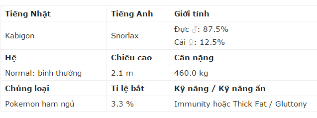 Tìm hiểu thêm » Hỗ trợ qua ZaloTrong Pokemon Go, ngoài bộ những Pokemon Huyền thoại thì bản danh sách các Pokemon mạnh nhất luôn là điều mà người chơi chú ý và dành nhiều sự quan tâm. Và cái tên nổi bật nhất trong bản danh sách này là gã khổng lồ Snorlax - một Pokemon to lớn và mạnh mẽ, nhưng lại có vô cùng mũm mĩm, đáng yêu và khó kiếm.