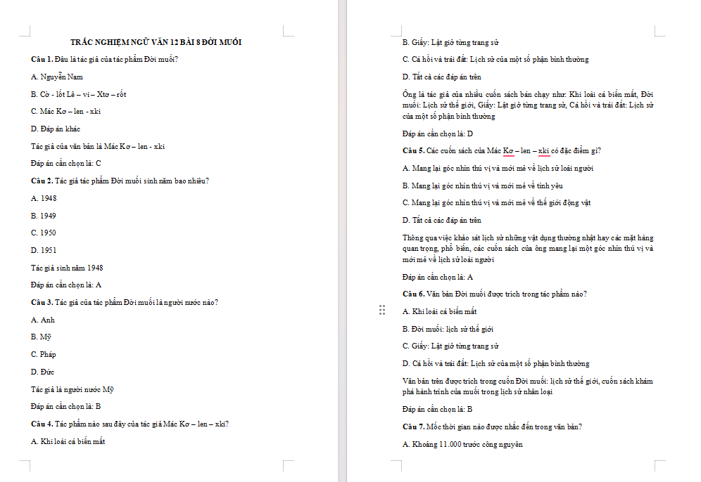 Trắc nghiệm Ngữ văn 12 Bài 8: Đời muối