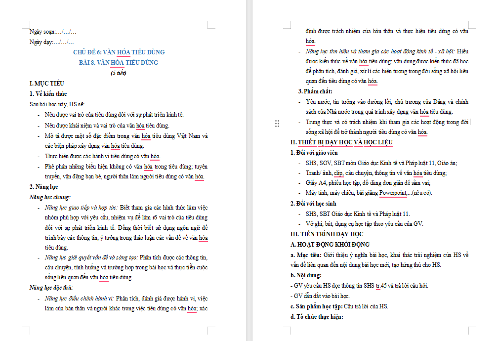 2. Giáo án GDKT&PL 11: Văn hóa tiêu dùng