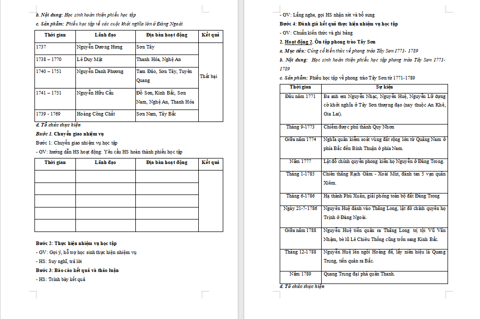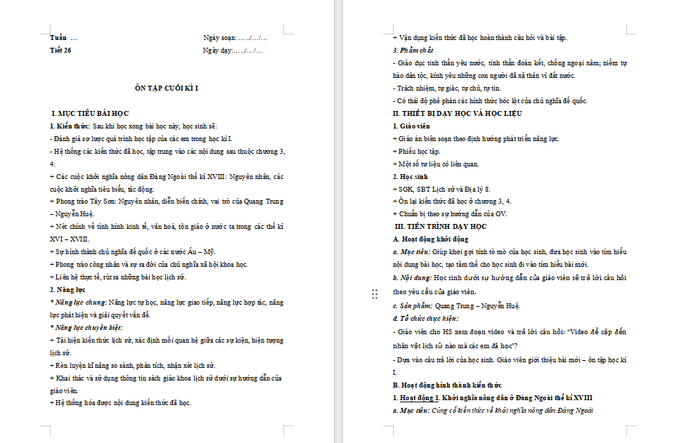Giáo án Lịch sử 8 Kết nối tri thức: Ôn tập cuối học kì 1
