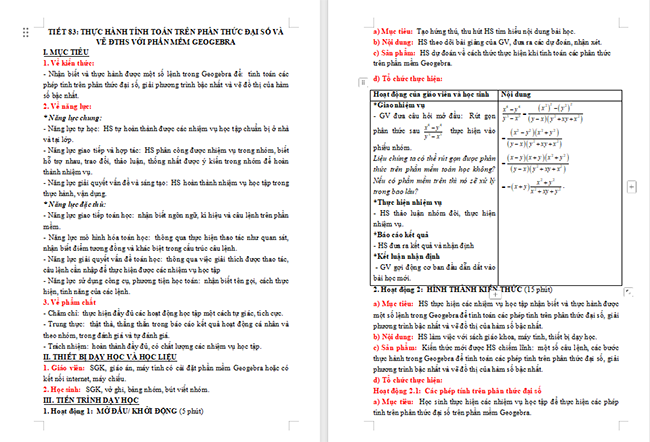 PowerPoint Toán 8 Thực hành tính toán trên phân thức đại số và vẽ đồ thị hàm số với phần mềm GeoGebra được thiết kế chi tiết bám sát nội dung trong SGK phần Hoạt động thực hành trải nghiệm với nhiều hình ảnh đẹp mắt, giúp bài giảng trở nên hấp dẫn hơn. Vậy sau đây là nội dung chi tiết Giáo án Toán 8 Thực hành tính toán trên phân thức đại số và vẽ đồ thị hàm số với phần mềm GeoGebra, mời các bạn tải tại đây.