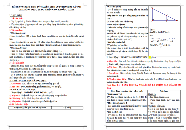 Giáo án PowerPoint Toán 8: Ứng dụng định lí Thalès định lí Pythagore và tam giác đồng dạng để đo chiều cao khoảng cách Giáo án Toán lớp 8 Kết nối tri thức (Word + PPT)