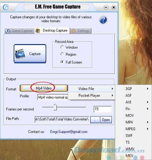 Click vào mục này (mặc định là Flash Video) và vào phần Video File, sau đó chọn một định dạng video để quay.