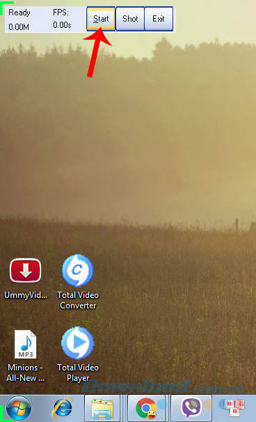 Bước 3: Trên màn hình máy tính sẽ xuất hiện (góc trên, bên trái) một Menu nhỏ như dưới đây. Click vào Start để bắt đầu quá trình ghi hình.