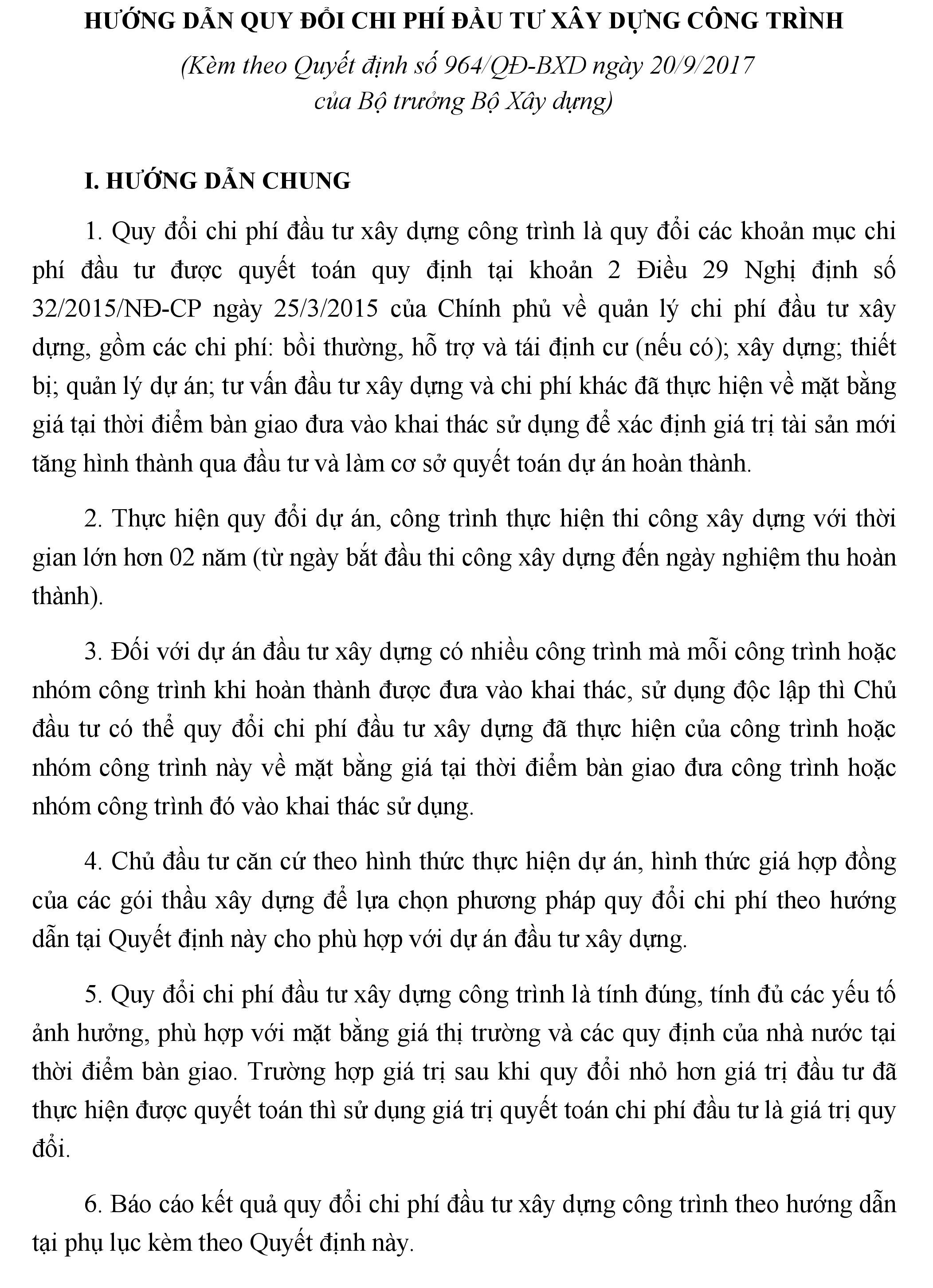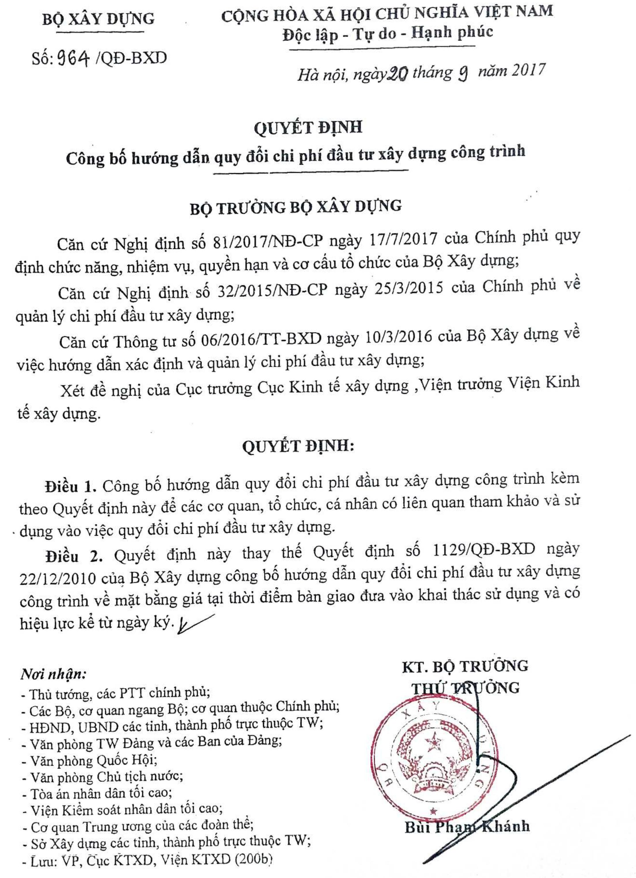Tìm hiểu thêm »Ngày 20/09/2017, Bộ Xây dựng đã ban hành Quyết định 964/QĐ-BXD công bố hướng dẫn quy đổi chi phí đầu tư xây dựng công trình. Quyết định có hiệu lực kể từ ngày ban hành. Nội dung chi tiết, mời các bạn cùng tham khảo tại đây.